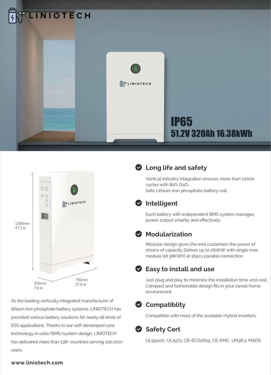 LTN Power storage wall is a battery that stores energy, detects outages and automatically becomes your home's energy source when the grid goes down. Your system detects outages, powers your home and electric vehicle with backup energy and automatically recharges with sunlight to keep your appliances running for days. Pair with solar and recharge with sunlight to keep your appliances running for days. Power storage wall reduces your reliance on the grid by storing your solar energy for use when the sun isn't shining. Use Power storage wall alone or combine it with other GSL products to save money, reduce your carbon footprint and prepare your home for power outages.