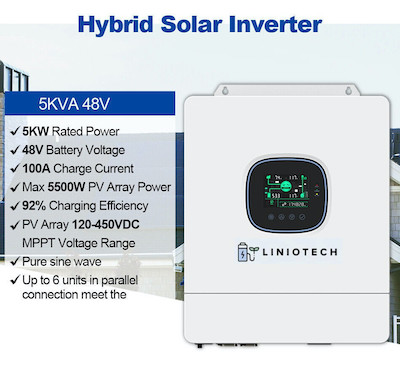 Liniotech 5kw Solar Inverter 48V with 80A MPPT Controller, Pure Sine Wave Power Inverter 5000W, Max. PV Input 5500W, 500V, 22A, Work with Lead Acid and Lithium Batteries!